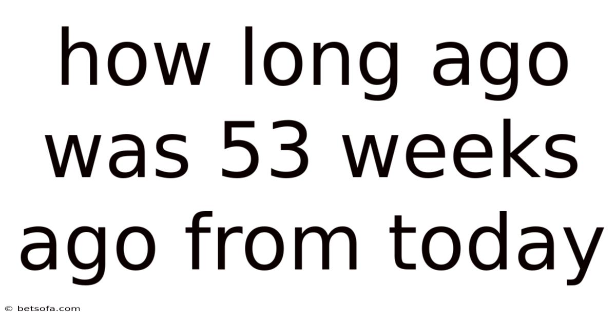 - How do you calculate the date 53 weeks ago? To calculate the date 53 weeks ago, multiply 53 by 7 to get the total number of days (371 days), then subtract 371 days from today's date.