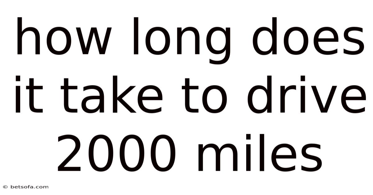 The answer to "how long does it take to drive 2000 miles" is never a single, static number. Depending on whether you are a solo driver pushing through the night or a family traveling with children, the time required can range from a grueling 30 hours to a leisurely 4 or 5 days. This article provides a comprehensive breakdown of the factors affecting your travel time, helping you plan a safe, efficient, and realistic itinerary for your long-distance expedition Easy to understand, harder to ignore..