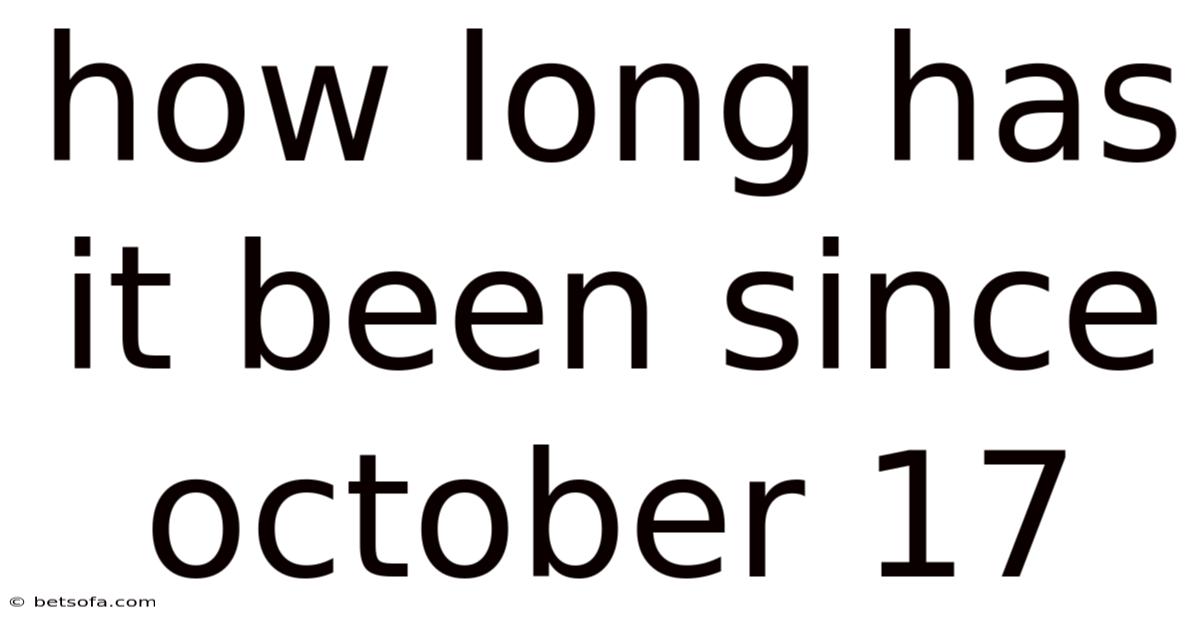 If you've ever found yourself wondering, "How long has it been since October 17?This question often arises when reflecting on past events, milestones, or personal memories tied to a specific date. In this article, we'll explore how to determine the duration since October 17, why this date might hold significance, and how to calculate it accurately. Whether it's a birthday, anniversary, or historical event, calculating the time elapsed since October 17 can be both meaningful and insightful. So " you're not alone. By the end, you'll have a clear understanding of how to measure time since any given date Worth keeping that in mind..