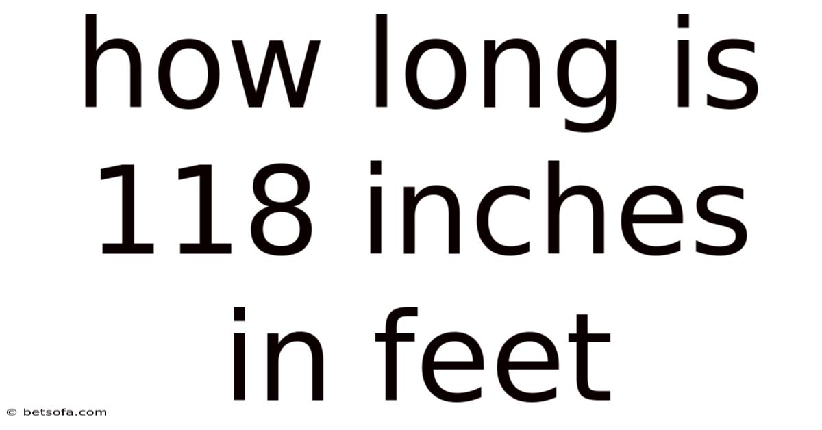- Divide by 12: Since there are 12 inches in a foot, divide 118 by 12. [ 118 \div 12 = 9.8333... ]