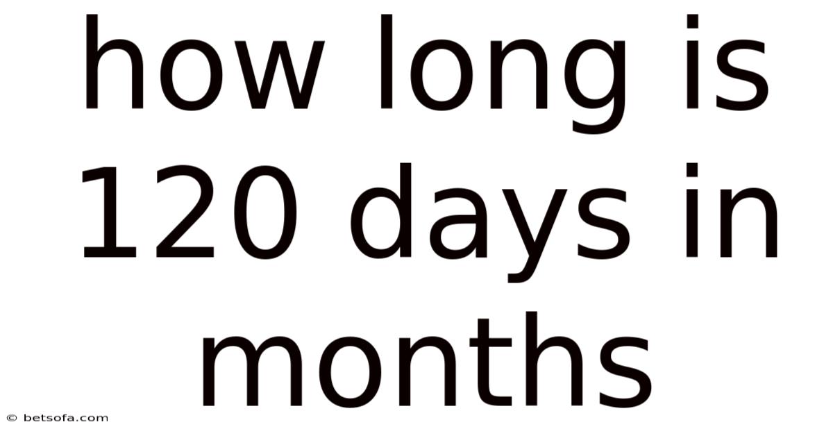 When you ask how long is 120 days in months, you’re essentially asking for the fraction of a month that 120 days represents. 94 months**. Practically speaking, 44), we get approximately **3. By dividing 120 by the average month length (30.In plain language, that means 120 days is just shy of four full months—specifically, three months plus about 28 extra days. This fractional result is useful because it lets you visualize the period as “three months and a little more,” which can be more intuitive than a raw decimal.