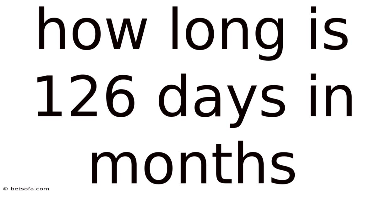 126 days ÷ 30.44 days/month ≈ 4.139 months - Step 3: Interpret the result. This means 126 days is approximately 4.14 months. You can further break this down: 0.14 of a month (0.139 * 30.44) is about 4.25 days. So, a more precise statement is 4 months and 4-5 days.