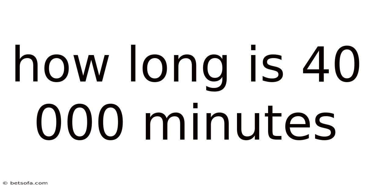 Another aspect to consider is the psychological impact of 40,000 minutes. Humans often struggle to visualize large numbers, and 40,000 minutes might seem overwhelming at first. Still, breaking