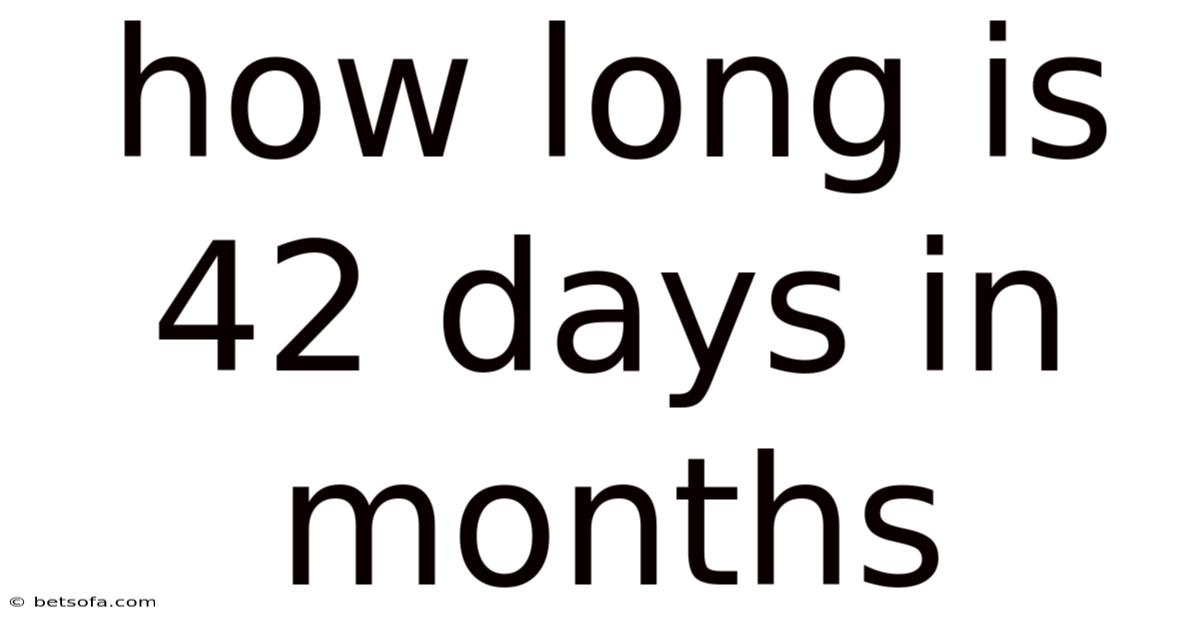 Q: Is 42 days exactly 1.5 months? A: Not exactly. If you use the average month length of 30.44 days, 42 days is about 1.38 months. On the flip side, depending on the specific months involved, it could be 1 month and a few days.