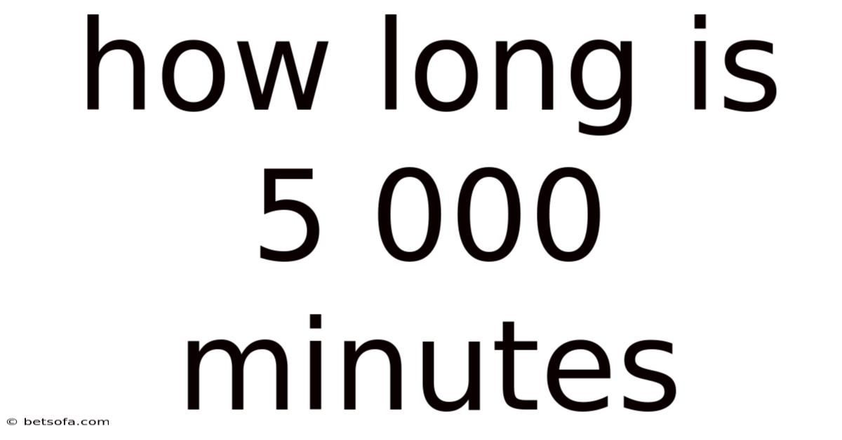 Have you ever found yourself staring at a schedule and wondering, “How long is 5 000 minutes?” Whether you’re planning a marathon training session, estimating the time required for a project, or simply curious about converting minutes into more familiar units, this question is surprisingly common. 5 000 minutes is a substantial amount of time—almost a whole week’s worth of focused effort. In this article, we’ll break down that number into hours, days, and even weeks, explore real‑world scenarios where such a conversion matters, and dispel common misconceptions. By the end, you’ll have a clear, practical understanding of how long 5 000 minutes truly is.