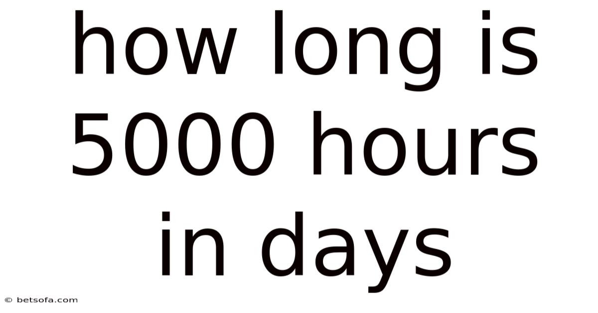 Have you ever wondered how many days 5000 hours really equals? Whether you’re planning a marathon study session, a long‑term project, or simply curious about converting time units, this article will break it down for you. That's why we’ll explore the math behind the conversion, present real‑world examples, and clarify common misconceptions. By the end, you’ll have a clear, practical understanding of what 5000 hours looks like in days, weeks, and even years Simple, but easy to overlook..