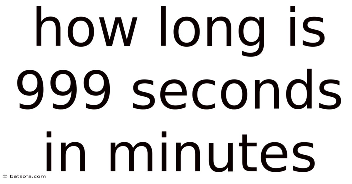 Have you ever found yourself staring at a digital stopwatch, wondering exactly how much time has passed when the numbers hit a specific threshold? In practice, one such moment occurs when a timer reaches 999 seconds. While it may seem like a simple numerical value, converting seconds into minutes is a fundamental skill in mathematics, time management, and scientific calculations. If you are asking, "how long is 999 seconds in minutes," you are looking for a conversion that bridges the gap between a raw, high-frequency unit of time and a more digestible, human-scale unit.
