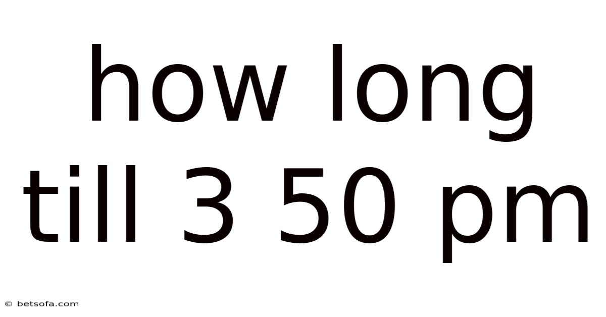 Knowing how long till 3 : 50 PM is a simple yet powerful skill that blends basic arithmetic with everyday time management. By converting times to total minutes, subtracting, and, when necessary, applying modular arithmetic, you can instantly determine the exact interval—whether it’s a few minutes, several hours, or nearly a full day. Even so, understanding common pitfalls—like AM/PM confusion or overlooking daylight‑saving shifts—ensures your answer remains accurate. Armed with mental shortcuts, smartphone tools, or spreadsheet formulas, you’ll never be caught off‑guard by a looming 3 : 50 PM deadline again. Mastering this tiny calculation contributes to smoother schedules, reduced stress, and a more punctual, productive life It's one of those things that adds up..