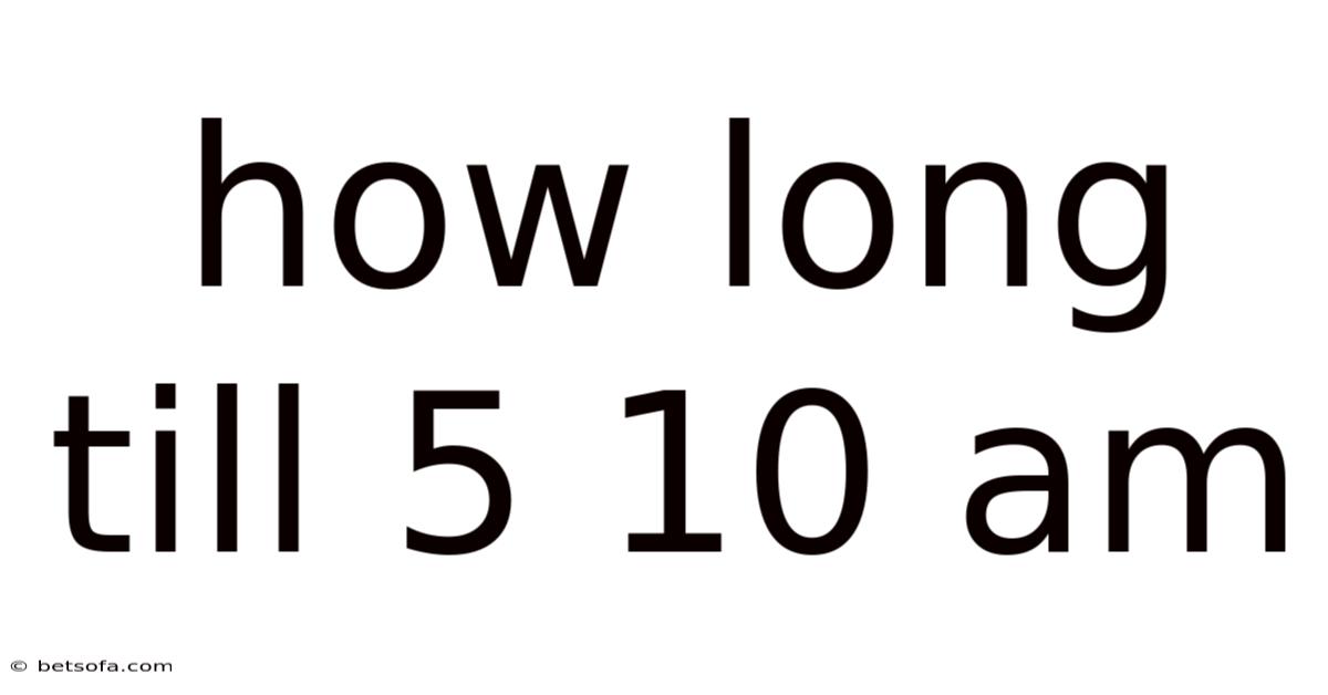 The question "how long till 5 10 am" represents a specific temporal inquiry that arises frequently in modern life, particularly when managing schedules, deadlines, or travel plans. Which means at its core, this phrase is asking for the duration—the measurable passage of time—between a current moment and the target time of 5:10 AM. Understanding this concept is essential for effective planning, whether you are coordinating across time zones, scheduling medication, or ensuring you arrive at an early appointment. This inquiry requires us to move beyond simply reading a clock and into the mathematical and logical process of calculating elapsed time, a fundamental skill that governs our punctuality and organization Worth knowing..