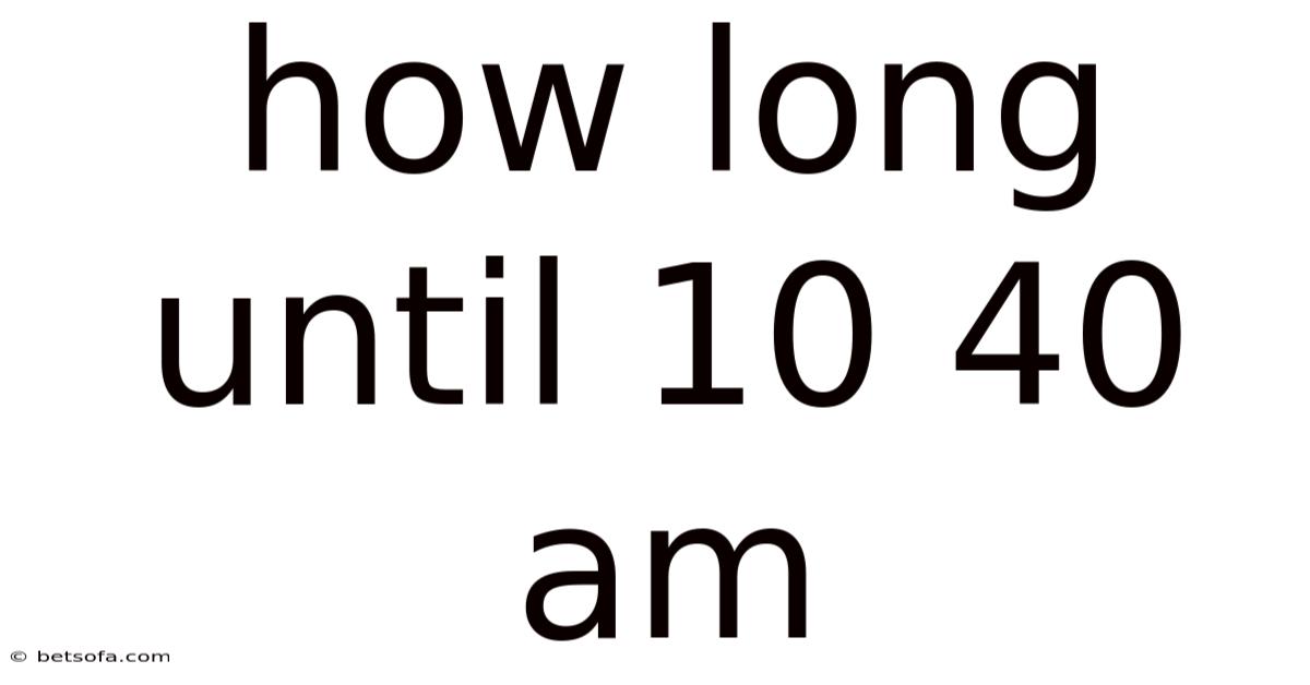 Ever glanced at the clock and wondered, “How long until 10:40 am?” Whether you’re trying to catch a bus, prepare for a meeting, or simply manage your morning routine, figuring out the remaining minutes can feel surprisingly tricky, especially when the current time is close to the target. Day to day, in this article we break down the simple arithmetic behind calculating the interval until 10:40 am, explore common scenarios that require this calculation, and give you a reliable step‑by‑step method you can use any day of the week. By the end of the read you’ll be able to answer the question instantly, avoid common timing mistakes, and even apply the same logic to any other future time you need to track The details matter here..