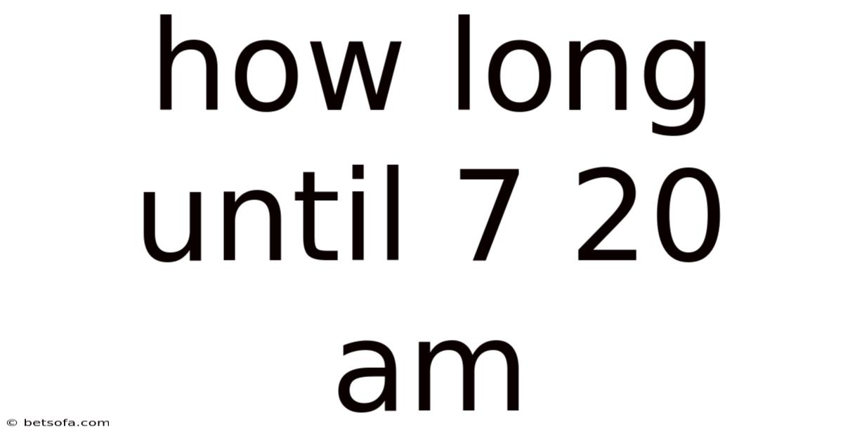 Detailed Explanation The phrase how long until 7:20 am refers to the duration between the current moment and the next occurrence of 7:20 am on a 12‑hour clock. To answer it accurately, you need three pieces of information: