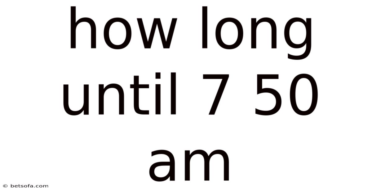 Time is one of humanity’s most precious resources, yet its management often feels elusive. Whether you’re racing against a deadline, planning a trip, or simply curious about the countdown to a specific moment, understanding how long until 7:50 AM can be a critical skill. This article dives deep into the mechanics of time calculation, explores real-world applications, and demystifies the science behind our perception of time. By the end, you’ll not only know how to calculate the duration until 7:50 AM but also gain insights into why time feels so subjective and how to master it in your daily life Not complicated — just consistent. That alone is useful..