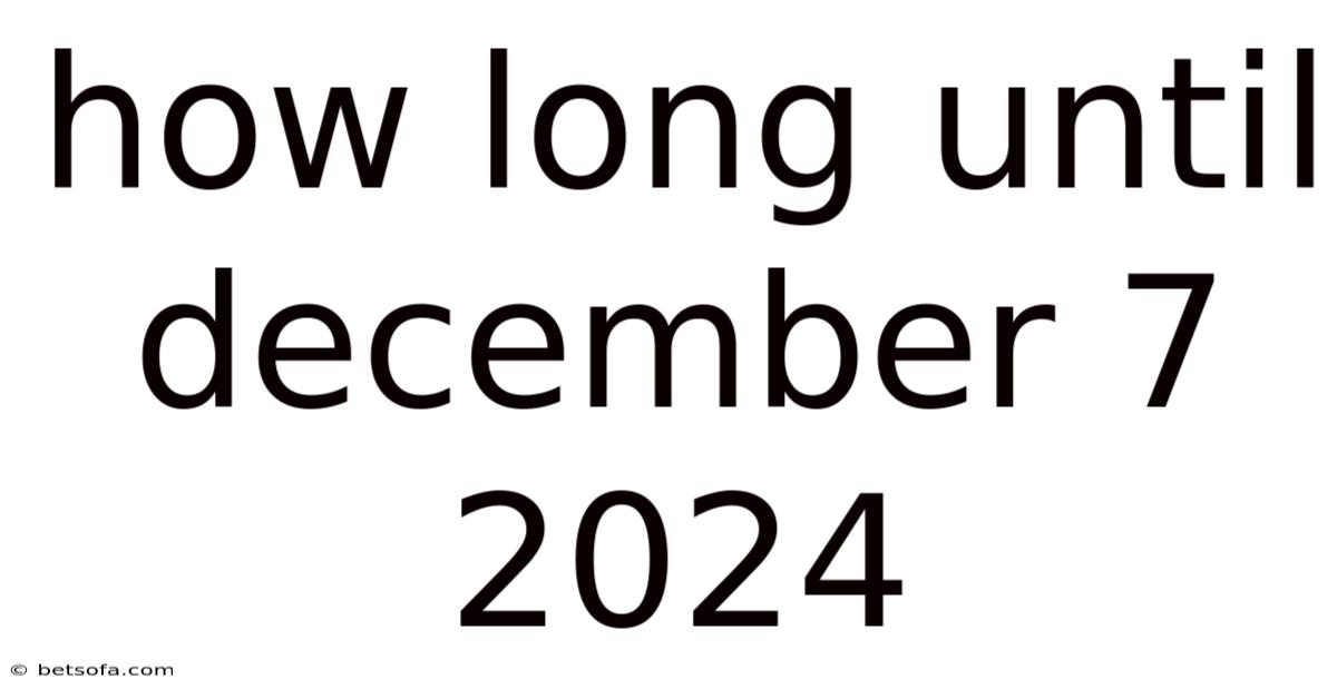 Understanding exactly how long until December 7, 2024 is far more than a simple arithmetic exercise; it is a fundamental skill for effective life planning, project management, and personal goal setting. This specific date, nestled in the final month of the year, serves as an excellent anchor point to explore the methods, tools, and significance of calculating future time intervals. Also, whether you are counting down to a significant personal event, a professional deadline, or simply curious about temporal distance, mastering this calculation provides clarity and a structured framework for anticipation. This article will deconstruct the process from multiple angles, offering both manual techniques and digital solutions, while highlighting why this seemingly simple question holds substantial practical weight.