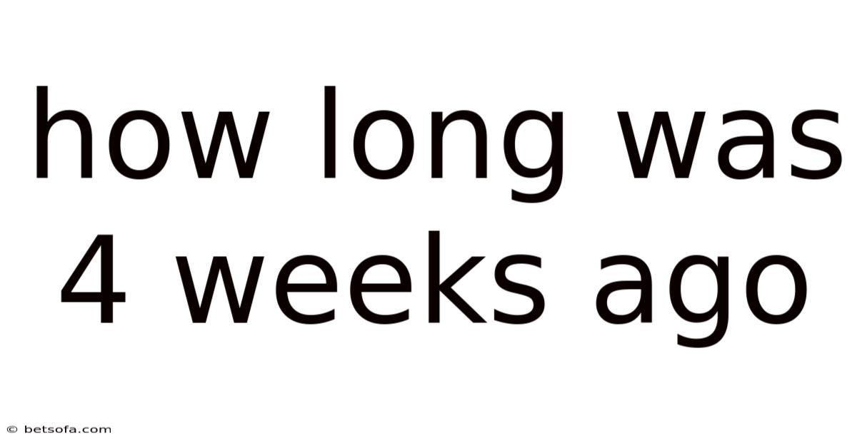 Ever found yourself wondering, “how long was 4 weeks ago” and realized that the answer isn’t as straightforward as a simple calendar check? Whether you’re trying to pinpoint a project deadline, recall a past event, or simply satisfy a curious mind, understanding the exact span of four weeks in everyday terms can be surprisingly useful. In this article we’ll break down the concept, explore how to translate it into days, weeks, and even months, and show you why mastering this simple calculation can sharpen your planning skills and boost your confidence when talking about time Worth keeping that in mind..