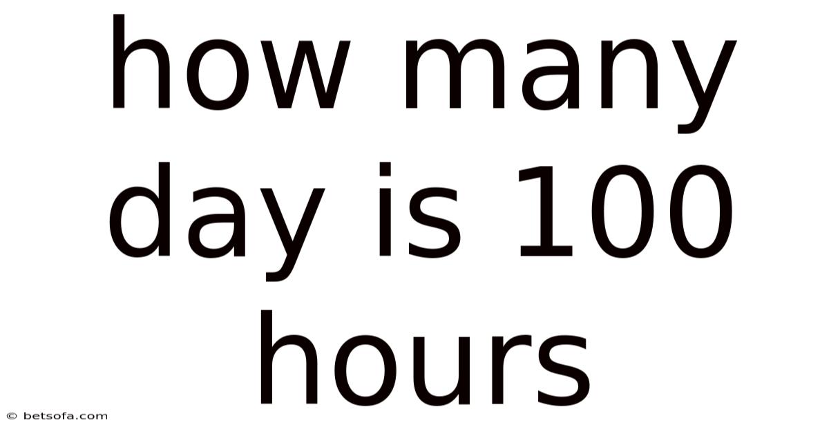 The term “100 hours” refers to a continuous or cumulative span of 100 hours, which could span multiple days depending on how time is segmented. For example, if you work 8 hours a day, 100 hours would equate to 12.5 days. However, if you’re measuring a 24-hour period, the answer is straightforward: 100 hours is approximately 4.17 days. This article will delve into these variations, ensuring you can apply the concept to real-world scenarios. Whether you’re a student, professional, or casual learner, mastering this conversion is a valuable skill for time management and planning.