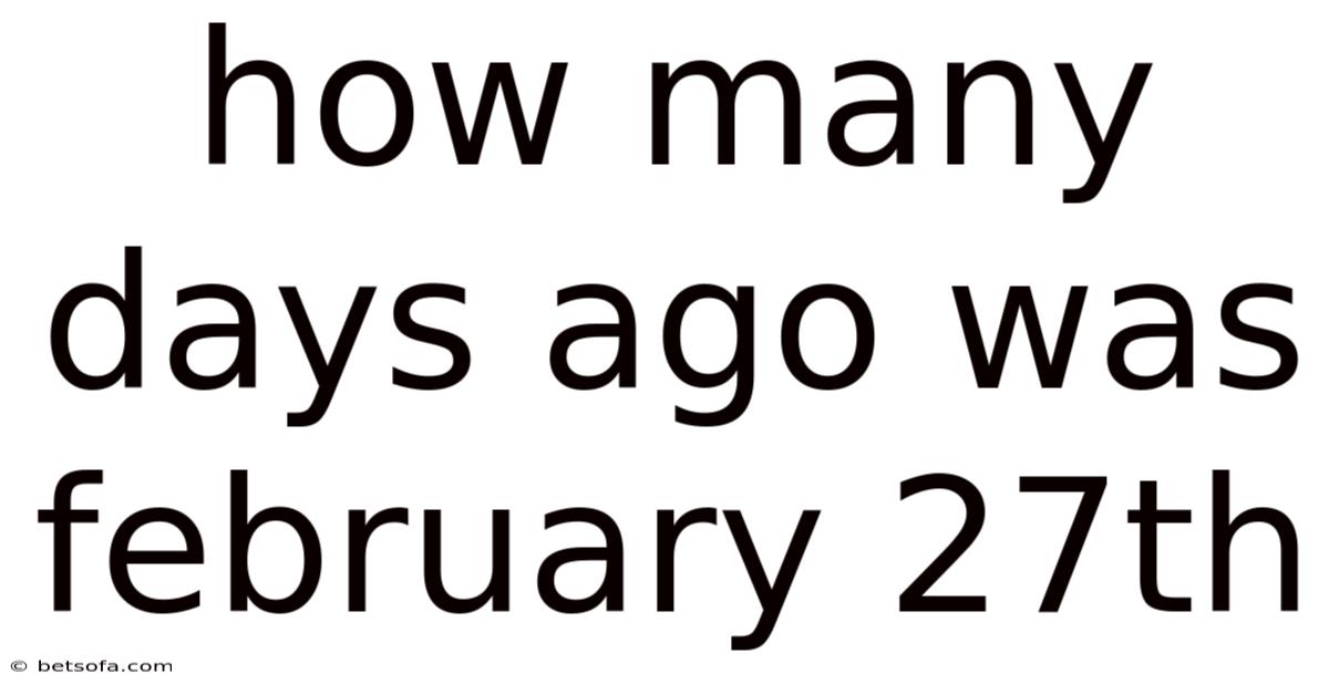 Understanding how many days ago a specific date, such as February 27th, was, is a simple yet essential skill that can be applied in numerous contexts. Which means by following the steps outlined in this article, you can calculate the number of days between any two dates accurately. Whether for personal use, academic research, or professional applications, the ability to work with dates is a valuable tool in our daily lives Easy to understand, harder to ignore..
