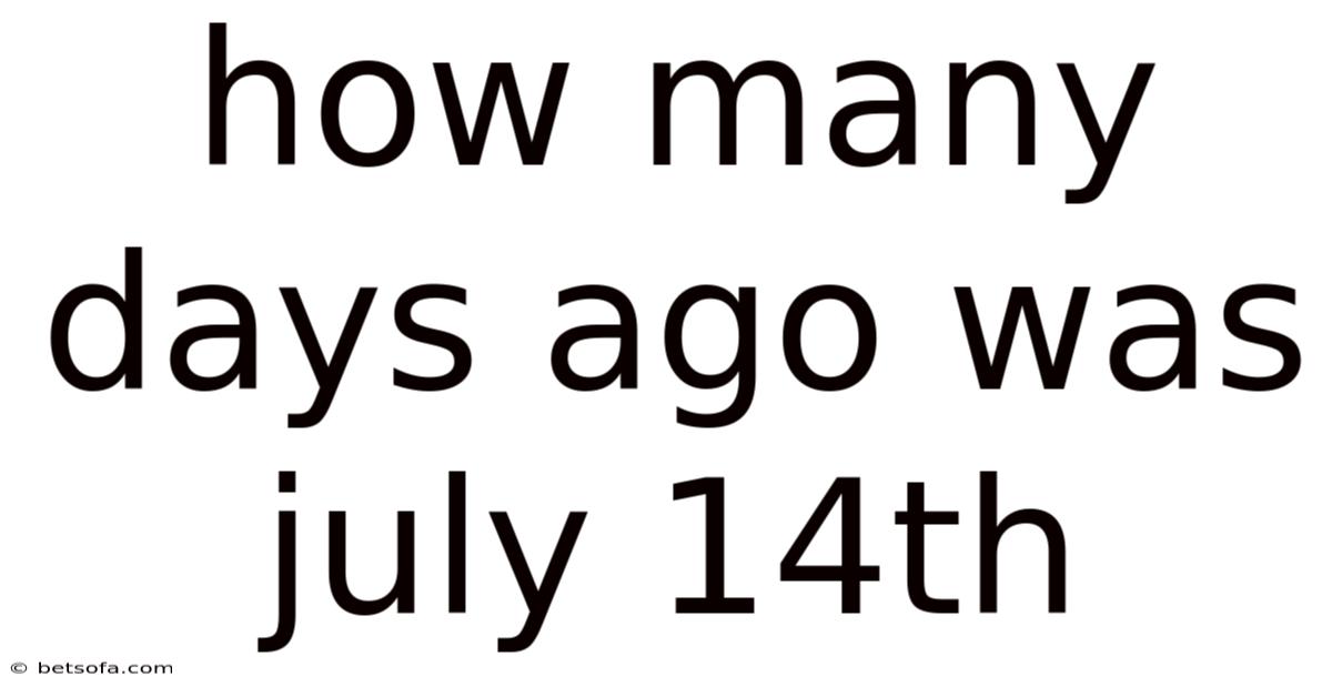 Calculating how many days ago July 14th was is a straightforward process once you understand the basics of date arithmetic and the structure of the calendar. Also, by following the steps outlined in this article and using the tools available, you can accurately calculate the number of days between any two dates. Whether you're tracking historical events, personal milestones, or project deadlines, knowing how to determine the time elapsed since a specific date is a valuable skill. Practically speaking, remember to account for leap years and use reliable methods to ensure accuracy. With this knowledge, you'll be able to answer questions about time intervals with confidence and precision.