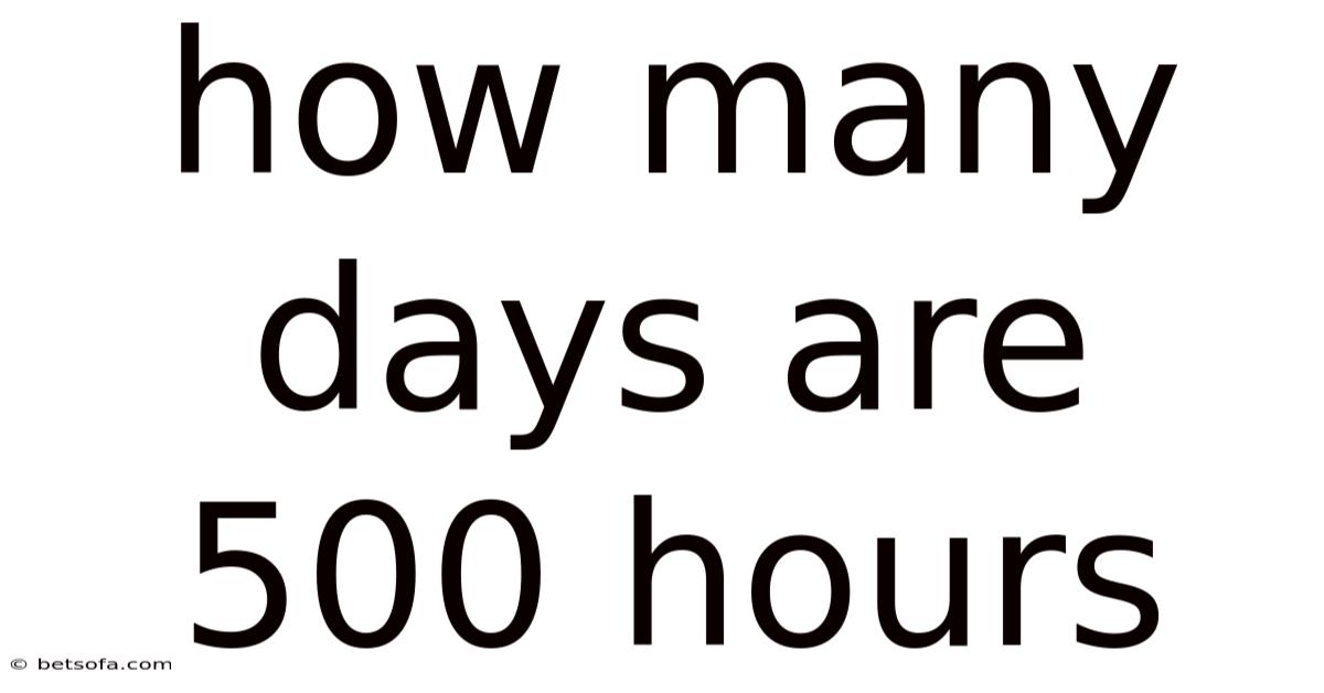 This means 500 hours equals approximately 20.83 days. To make this more intuitive, we can break it down further: