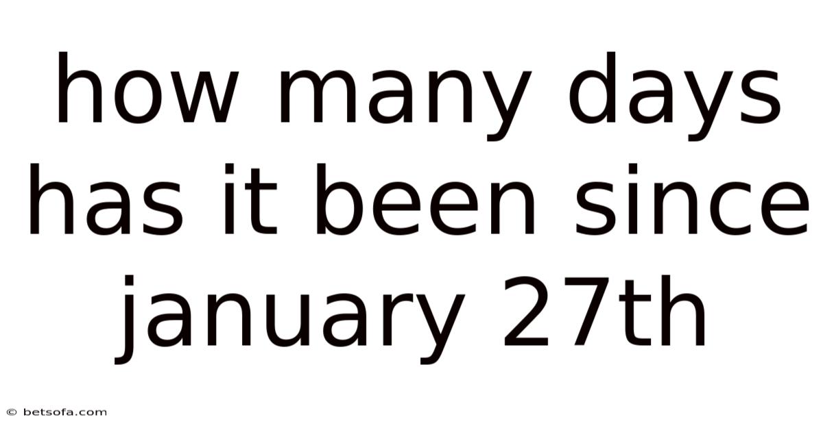 How many days has it been since January 27th? This question, though seemingly simple, carries a surprising depth of relevance in both everyday life and specialized contexts. At its core, it asks for a straightforward calculation of time elapsed between a specific date—January 27th—and the present moment. That said, the answer to this question is not just a number; it reflects how we perceive time, track progress, and organize our lives. Whether you’re planning an event, monitoring a project deadline, or simply curious about the passage of time, understanding how many days have passed since January 27th can provide valuable insights That's the whole idea..