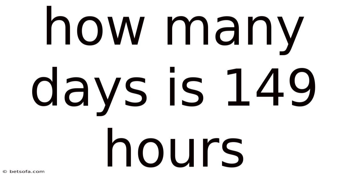 To determine the number of days equivalent to 149 hours, we perform a simple division. Dividing 149 by 24 yields a quotient of 6 and a remainder of 5. Mathematically, this can be expressed as: