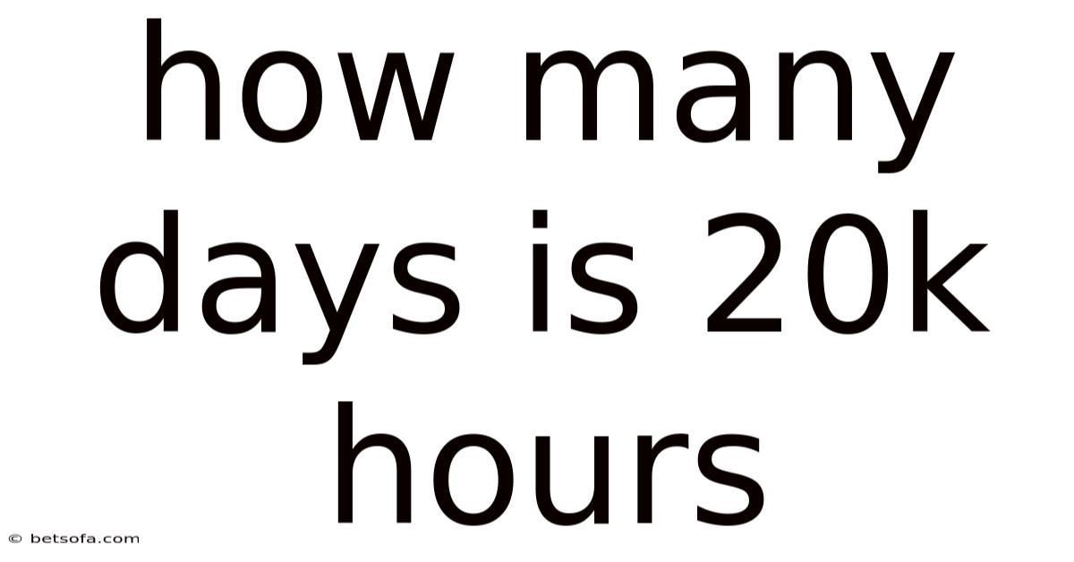 This means 20,000 hours equals approximately 833 days and 8 hours. To put this into perspective, 833 days is roughly 2 years and 4 months (since 365 days × 2 = 730 days, and 833 − 730 = 103 days, which is about 3.4 months).