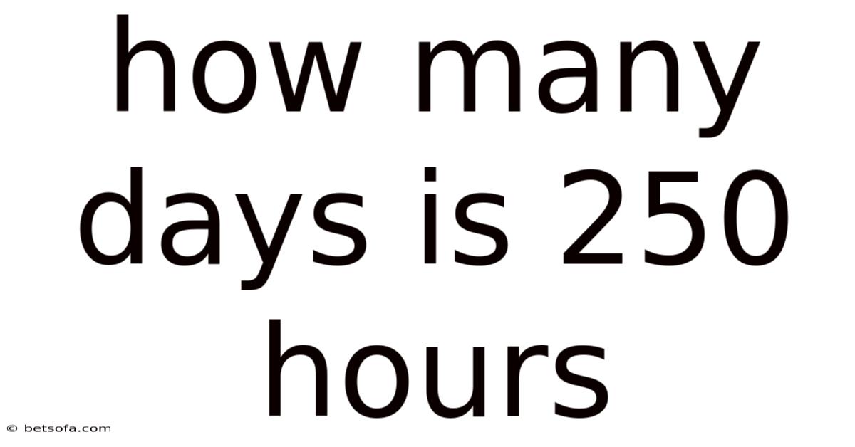 How many days is 250 hours? This question might seem simple at first glance, but it carries practical significance in various aspects of life, from work schedules to project planning. Understanding the conversion between hours and days is a fundamental skill that helps individuals manage time more effectively. Whether you’re tracking hours for a job, calculating study time, or planning a trip, knowing how many days 250 hours equates to provides clarity and precision. The answer lies in a straightforward mathematical relationship, but the context in which this conversion is applied can vary widely. For instance, 250 hours could represent a full-time work commitment over several weeks or a personal goal requiring disciplined effort. This article will explore the calculation, real-world applications, and nuances of converting 250 hours into days, ensuring a comprehensive understanding of the concept.