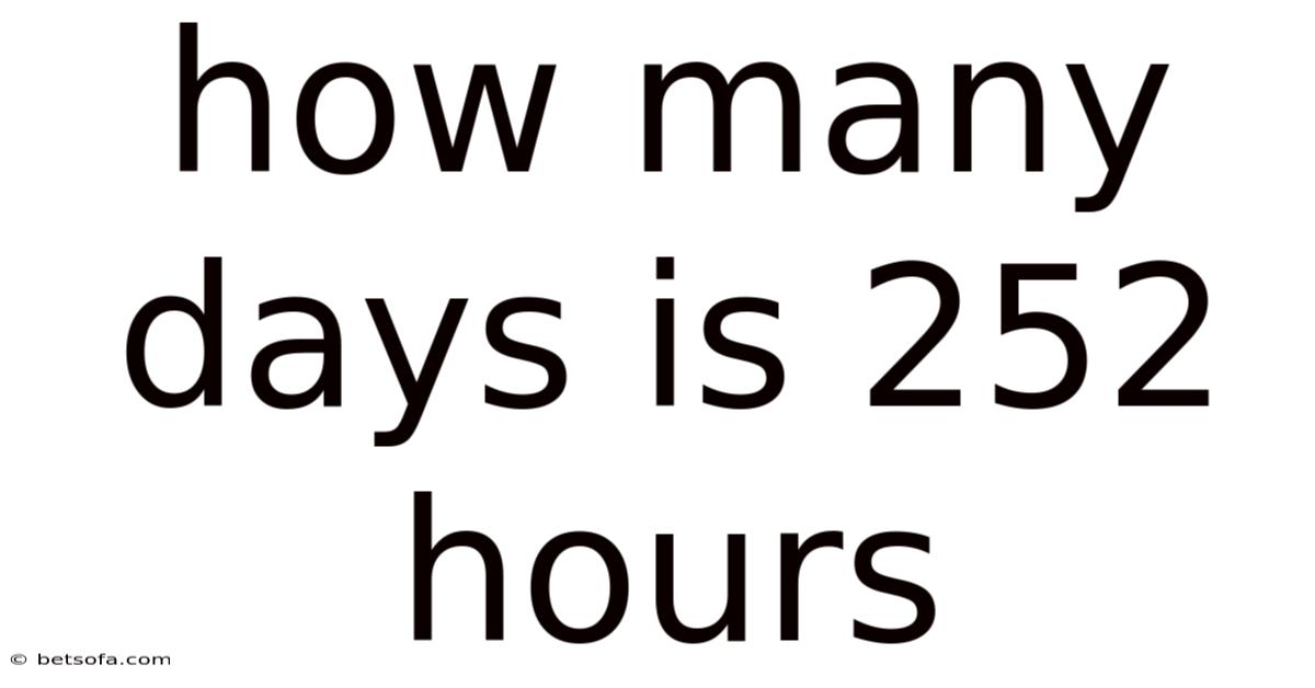 Have you ever found yourself staring at a spreadsheet, calculator, or a wall clock and wondering, “How many days is 252 hours?” Whether you’re planning a trip, scheduling a work shift, or simply curious about time conversions, this question pops up more often than you might think. In this article we’ll break down the math behind the conversion, explore practical scenarios where you might need to know, and provide quick reference tips so you can answer the question in seconds. By the end, you’ll not only understand the answer—11 days and 12 hours—but also how to apply this knowledge in everyday life Small thing, real impact..