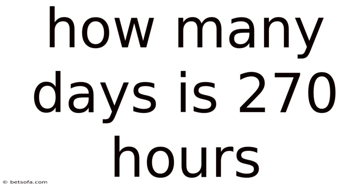 The conversion of 270 hours into approximately 11.From personal planning and interdisciplinary collaborations to scientific modeling and automated systems, understanding the precise relationship between hours and days equips individuals with a versatile tool for informed decision‑making. So recognizing the importance of fractional days, applying context‑appropriate rounding, and integrating the conversion into modern workflows further amplify its utility while safeguarding against common pitfalls. 25 days exemplifies how a straightforward mathematical operation can ripple through diverse facets of daily life, professional practice, and scholarly inquiry. When all is said and done, mastering this conversion underscores a fundamental principle: the way we measure time shapes the way we allocate, optimize, and interpret the moments that compose our lives. By appreciating both the quantitative accuracy and the qualitative implications of such conversions, we gain a clearer, more intentional perspective on the temporal dimensions that govern our world Worth keeping that in mind. Worth knowing..