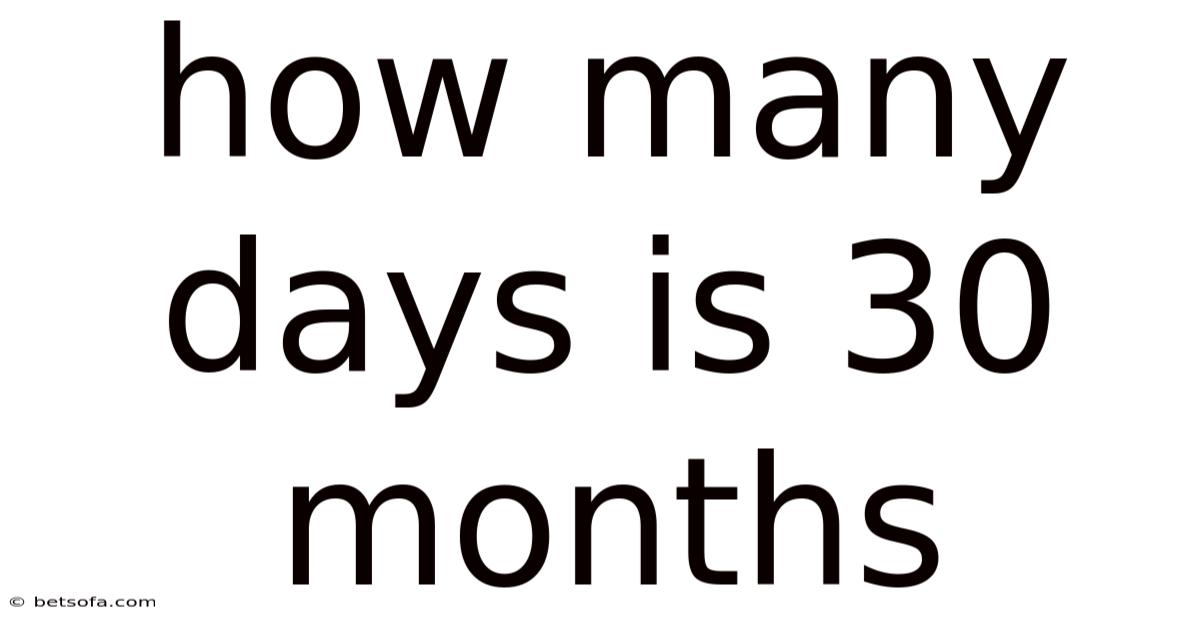 Using the average Gregorian month length of 30.436875 days, 30 months equal approximately 913 days. This is an average; the exact count can be 912 or 913 depending on the months involved.