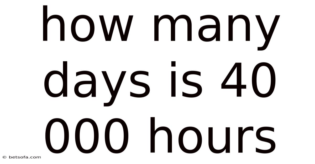 Imagine dedicating 40,000 hours to a single pursuit. This isn't a trivial amount of time; it represents a profound commitment. It's the duration of a significant portion of a human life dedicated to a single endeavor. But defining the main keyword, "40,000 hours," clearly establishes the starting point for this exploration, setting the stage for a detailed breakdown of its equivalent in days and the broader context it represents. This fixed unit forms the bedrock of our daily schedules, project timelines, and life planning. So, 40,000 hours equates to a staggering 20 full working years. This magnitude makes the conversion from hours to days not just a mathematical exercise, but a crucial tool for understanding the scale of long-term projects, career paths, educational pursuits, or even personal goals. For perspective, consider that the average full-time worker in many countries puts in roughly 2,000 hours per year. The core concept here is the fundamental relationship between hours and days within our standard timekeeping system, where a day is defined by the Earth's rotation on its axis, consistently comprising 24 hours. This section functions as a meta description, enticing the reader with the question and hinting at the depth of information to follow.