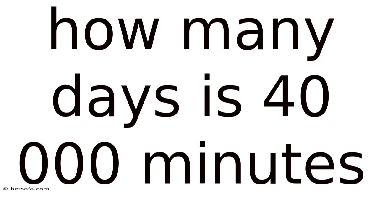 The short version: how many days is 40,000 minutes is a question that combines basic arithmetic with a deeper understanding of time measurement. It underscores the importance of precise calculations in everyday life and demonstrates how a seemingly large number of minutes can translate into a more comprehensible unit like days. This knowledge is not only useful for practical purposes but also enriches our