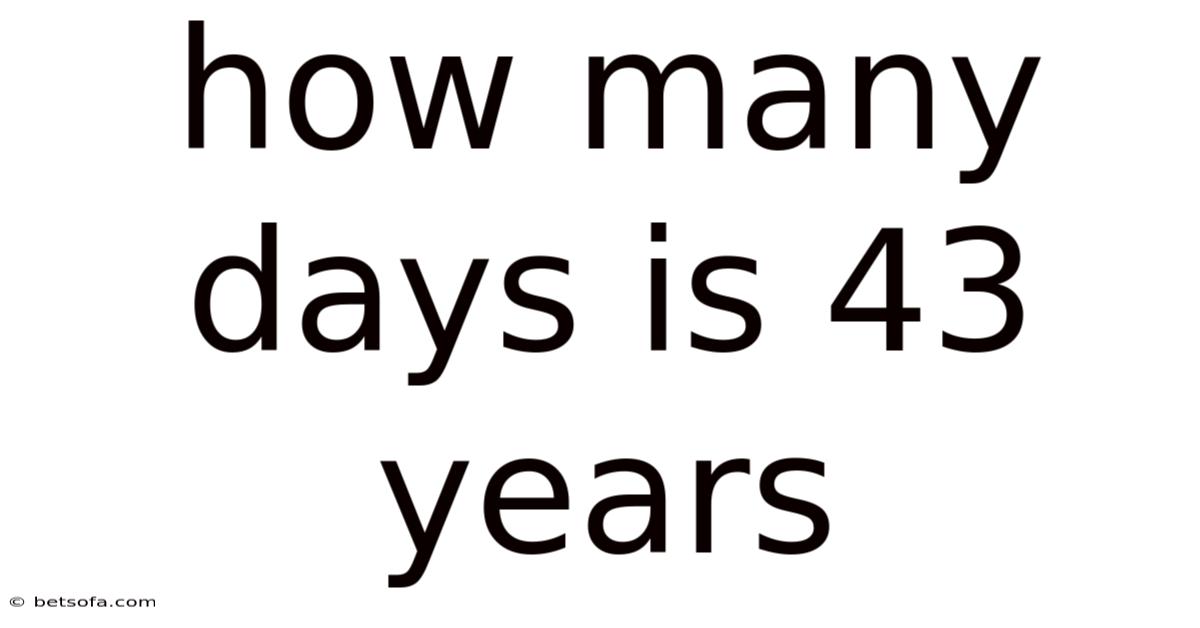 Howmany days is 43 years? This question might seem simple at first glance, but it opens the door to a deeper exploration of time, calendars, and the nuances of human measurement. At its core, the query is about converting a span of years into a more granular unit—days. While the answer might appear straightforward, the calculation involves more than just multiplying 43 by 365. It requires understanding the structure of our calendar system, the role of leap years, and the variations in how time is measured across different contexts. For many, this conversion is a practical necessity, whether for planning long-term goals, tracking age, or understanding historical timelines. That said, for others, it might be a curiosity about the mechanics of time itself. Regardless of the reason, the question of how many days are in 43 years is a gateway to understanding how we quantify and perceive time in our daily lives That alone is useful..