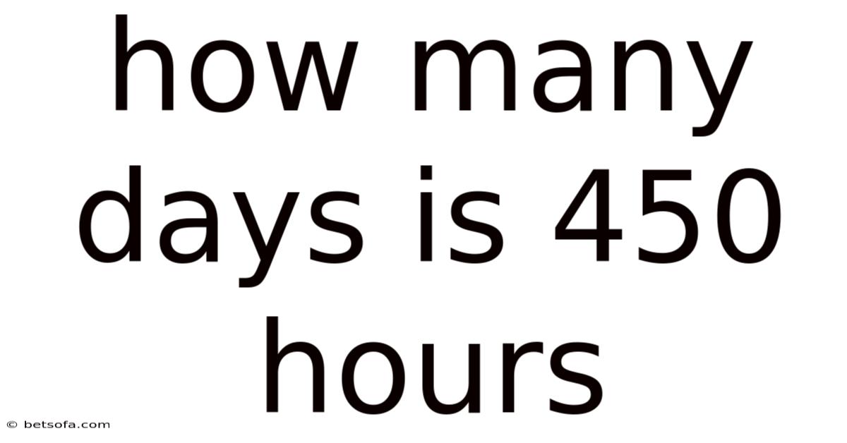 Q: Is 450 hours exactly 19 days? A: Not exactly. 450 hours is 18.75 days, which is 18 days and 18 hours. It's often rounded to 19 days for simplicity, but that's not precise.