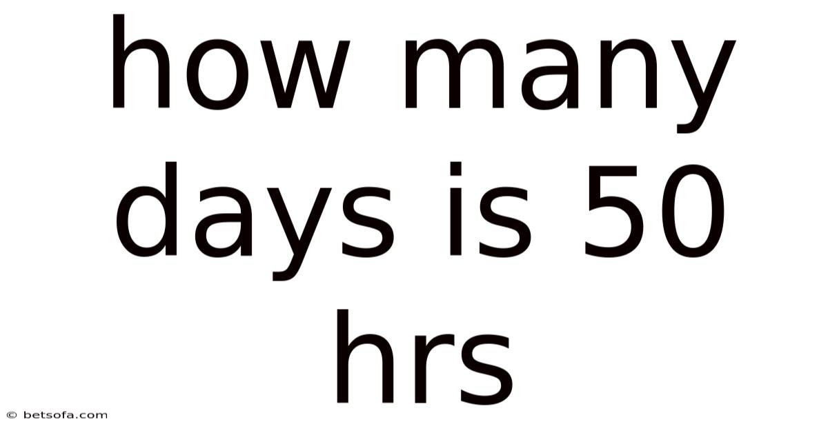 - Using the conversion: 50 hrs ÷ 24 hrs/day = 2.08333 days.