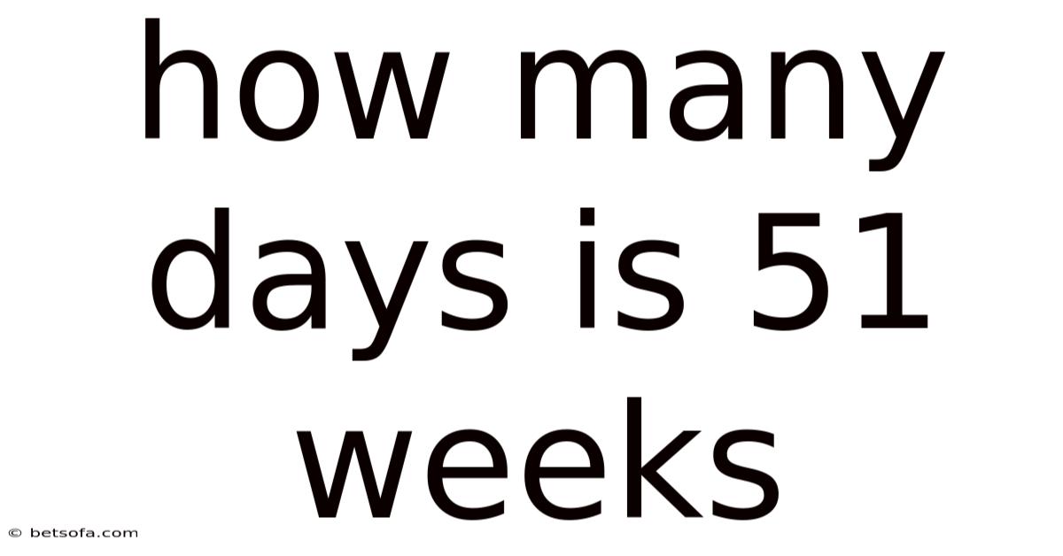 Q: How many days are in 51 weeks? A: 51 weeks equals 357 days, calculated by multiplying 51 by 7.