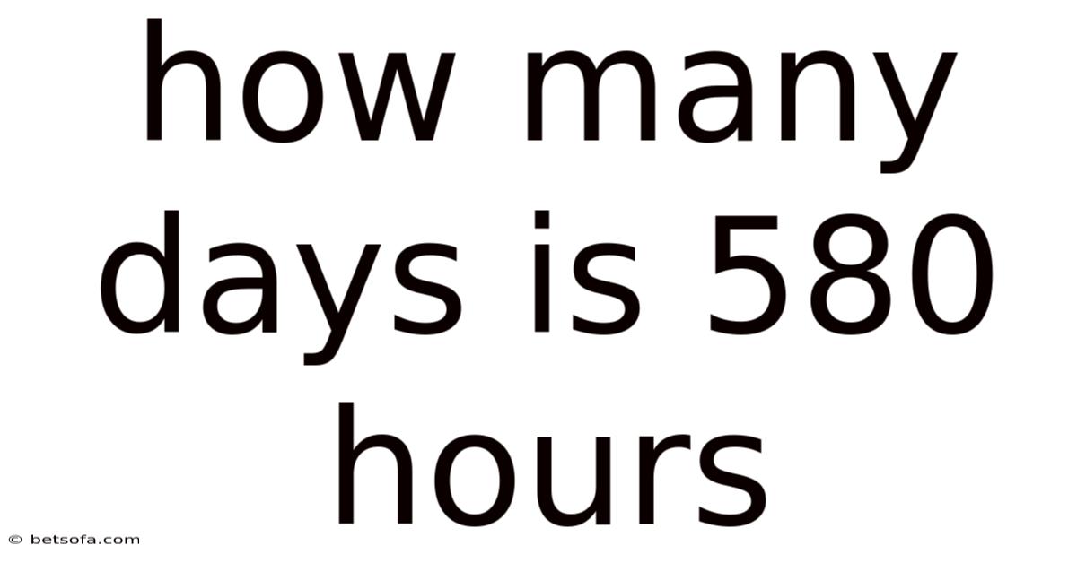 580 hours equals 24 days and 4 hours, or approximately 24.17 days. This is precisely 24 days plus 4 hours because 0.That said, 1666... × 24 = 4 Worth knowing..