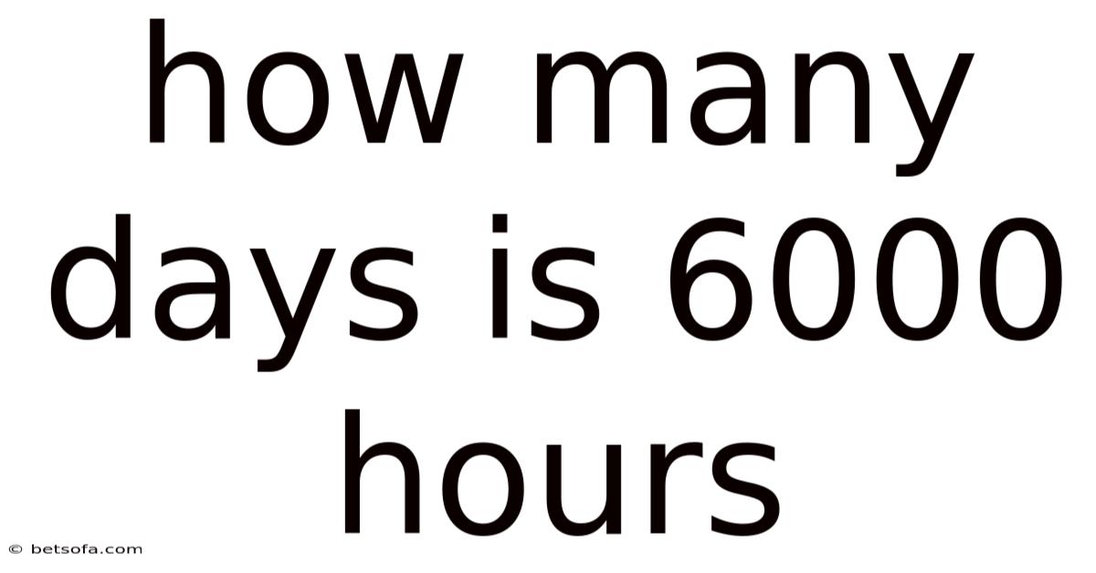 These examples illustrate that 6000 hours isn’t just an abstract number; it represents a tangible span of time that can be broken down into manageable days.
