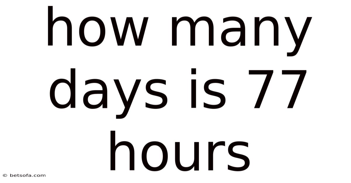 Whenyou encounter a time span expressed in hours and need to understand its equivalent in days, the question often arises: how many days is 77 hours? This simple conversion is more than a arithmetic exercise; it is a practical skill that appears in project planning, travel itineraries, scientific experiments, and everyday scheduling. In this article we will explore the exact calculation, break down the underlying concepts, illustrate real‑world applications, and address common pitfalls that can lead to misinterpretation. By the end, you will not only know the answer but also feel confident handling any similar conversion.