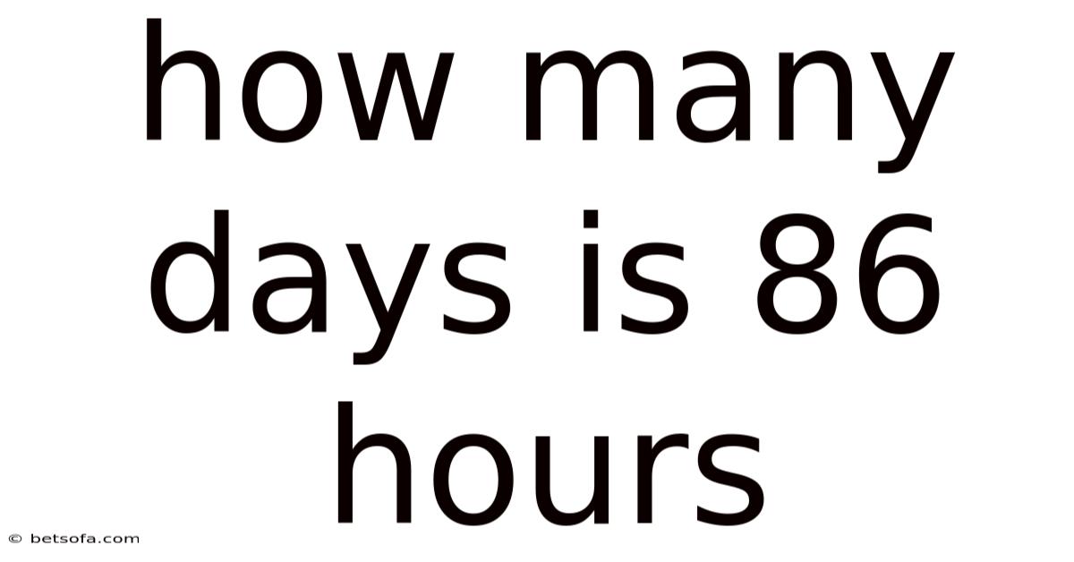 Q: Is 86 hours exactly 3.5 days? A: No, 86 hours is not exactly 3.5 days. It’s 3 days and 14 hours, since 0.58 of a day is roughly 14 hours.