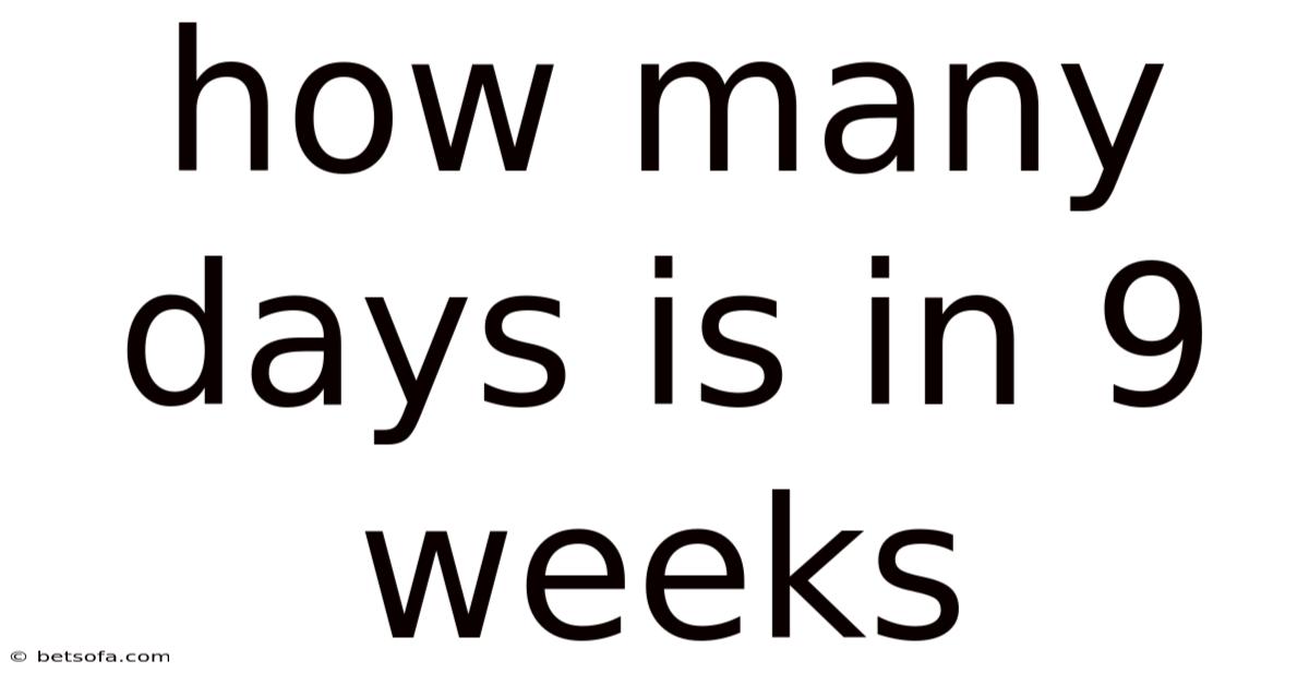 At first glance, the question "how many days is in 9 weeks" seems almost trivial, a simple arithmetic check we might have learned in elementary school. Yet, this fundamental calculation is a cornerstone of effective planning, project management, personal goal setting, and understanding biological or academic cycles. Whether you are tracking a pregnancy, scheduling a training program, managing a work sprint, or simply counting down to an event, the ability to easily convert between weeks and days is an essential, practical life skill. This article will not only provide the definitive answer but will explore the context, applications, and common pitfalls surrounding this basic yet critical time conversion, transforming a simple math problem into a comprehensive lesson in temporal literacy.