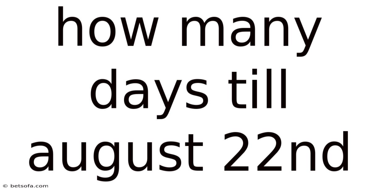 All in all, the seemingly simple question of "how many days till August 22nd" reveals a surprisingly complex interplay of mathematics, psychology, and cultural context. From the straightforward calculation involving date subtraction and leap year considerations to the emotional anticipation and practical planning it inspires, this query demonstrates the profound impact of time on our lives. While technology has simplified the process of obtaining this information, understanding the underlying principles and appreciating the psychological significance of temporal awareness remains essential. In the long run, the answer to this question is more than just a number; it's a reflection of our relationship with time and our ability to deal with the future.