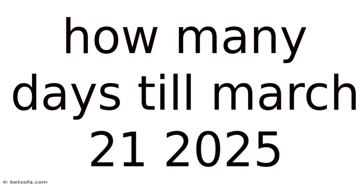 Have you ever found yourself wondering about the time remaining until a significant future date? Even so, whether you're planning an important event, counting down to a deadline, or simply curious about how much time is left in the current season, calculating days until a specific date is a common need. Now, march 21 holds particular significance as it marks the vernal equinox in many calendar systems, symbolizing the transition from winter to spring in the Northern Hemisphere. So the question "how many days till March 21 2025" represents more than just a simple calculation—it's about understanding our relationship with time and planning for the future. This article will guide you through understanding how to calculate the days remaining until March 21, 2025, explore the methods to determine this timeframe, and examine why such calculations matter in our daily lives.