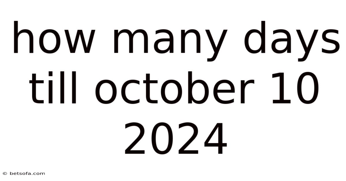 Counting the days until a specific date can feel like a simple mental exercise, yet it also offers a practical way to plan projects, set deadlines, or simply satisfy curiosity. When you ask, “How many days till October 10 2024?” you’re looking for a precise answer that can help you schedule events, track progress, or even plan a birthday celebration. In this article we will break down the calculation step by step, explore real‑world applications, and address common pitfalls so you can confidently determine the number of days between any two dates No workaround needed..