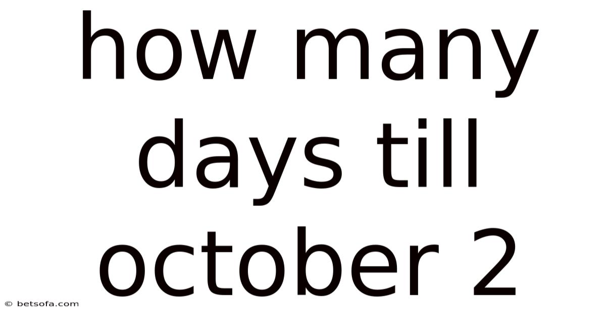 The question "how many days till October 2" is asked by countless people throughout the year, and the answer varies dramatically depending on when the question is being asked. As an example, if you're reading this in early January, October 2 might feel like a distant future event, while someone asking in late September likely needs a much more immediate answer. This dynamic nature of time calculation makes it essential to understand both the methodology behind counting days and the various factors that can affect the calculation, such as leap years, different calendar systems, and the specific time of day when the count begins.