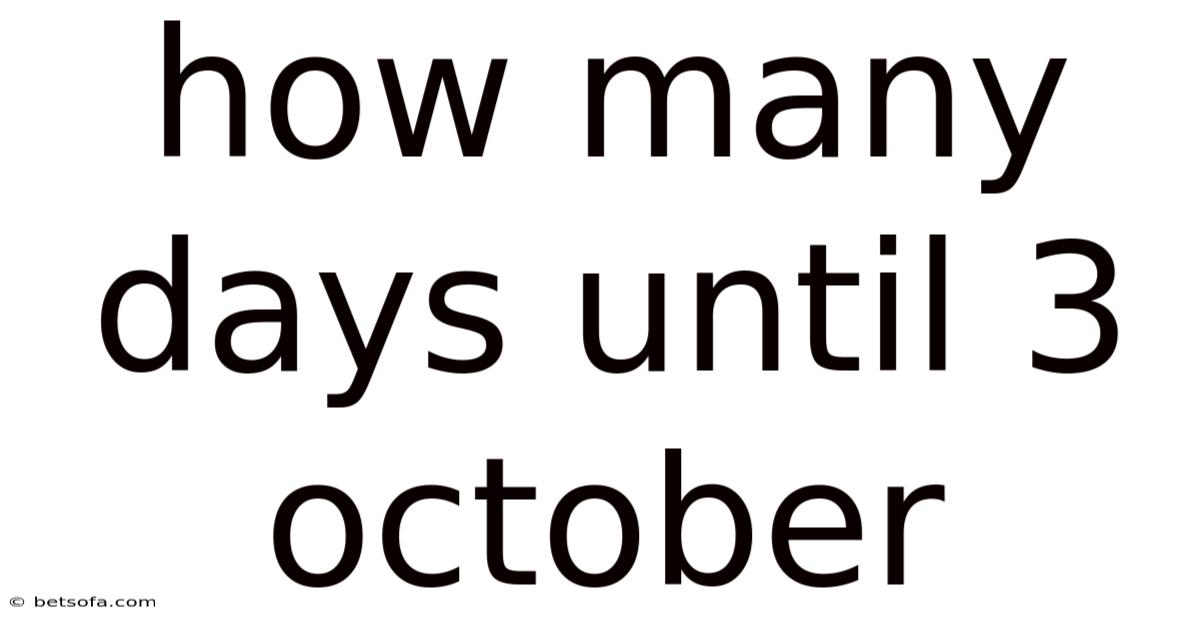 The question of "how many days until 3 October" often arises in daily planning, whether for personal calendars, professional deadlines, or event scheduling. This query touches on a fundamental aspect of time management, requiring precision and clarity to avoid miscalculations that could disrupt routines or cause stress. Understanding the number of days remaining between today’s date and October 3rd is not merely a numerical exercise but a practical necessity for those relying on accurate timelines. Whether planning a project, coordinating with colleagues, or preparing for seasonal events, grasping this information ensures efficiency and reduces the likelihood of overlooked details. In a world where time is a finite resource, such foresight becomes a cornerstone of productivity and organization. The significance of this calculation extends beyond mere arithmetic; it reflects a deeper commitment to managing one’s life with intention and precision. By addressing this directly, we lay the groundwork for effective planning, ensuring that the transition from current to future becomes seamless and purposeful.