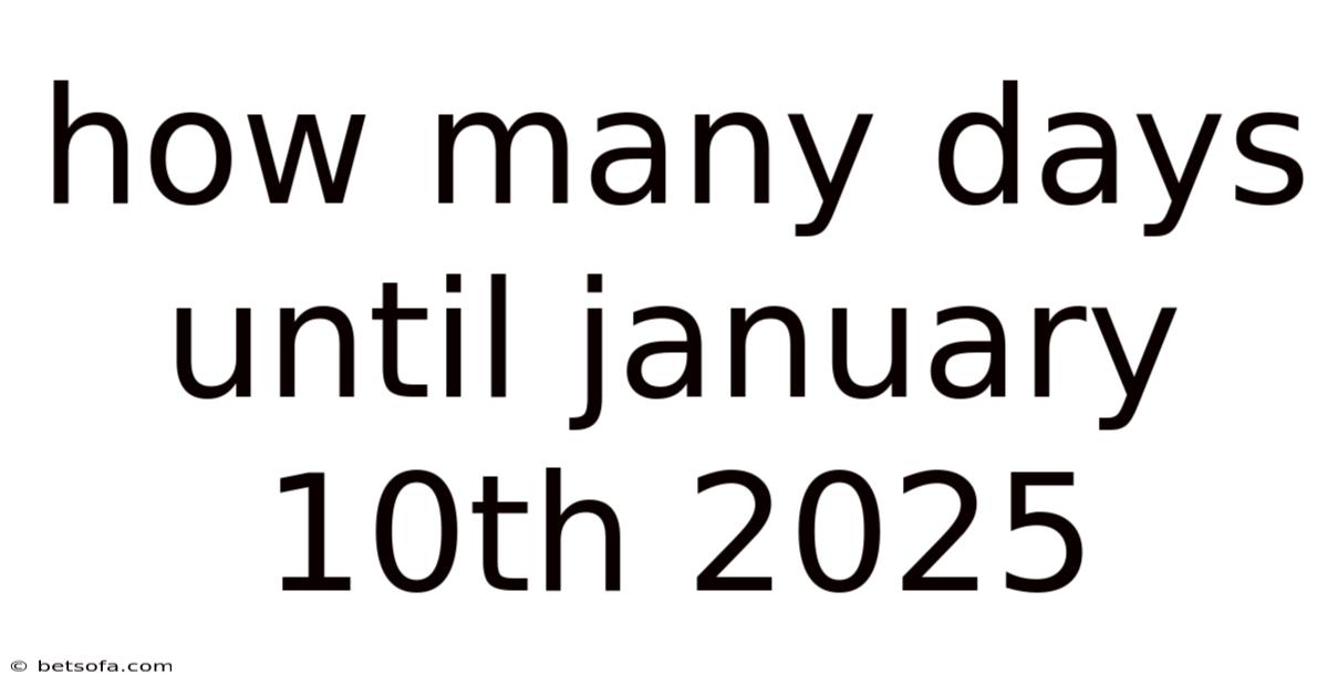 Have you ever found yourself wondering how many days remain until a significant future event, such as January 10th, 2025? Plus, calculating days until January 10th, 2025 involves understanding our calendar system, recognizing leap years, and applying basic arithmetic to determine the precise time remaining. Whether you're planning an important milestone, counting down to a vacation, or organizing a special celebration, knowing the exact number of days until a specific future date can be both practical and exciting. This article will guide you through various methods to calculate this countdown, explore why such calculations matter in everyday life, and provide you with the tools to perform these calculations accurately for any future date you might be interested in.