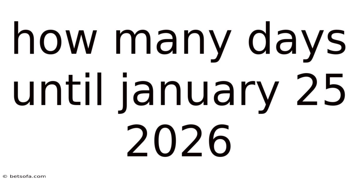 So, there you have it – 83 days until January 25, 2026. This seemingly simple calculation can have a significant impact on how we approach our lives, from managing deadlines to planning for future events. By understanding the mechanics of calendar dates and practicing this straightforward method, you can confidently work through time and make the most of each passing day. Whether you're a student, a professional, or simply someone who appreciates organization, knowing the countdown can provide a sense of control and encourage proactive planning. Don't just wait for the date – actively prepare for it!