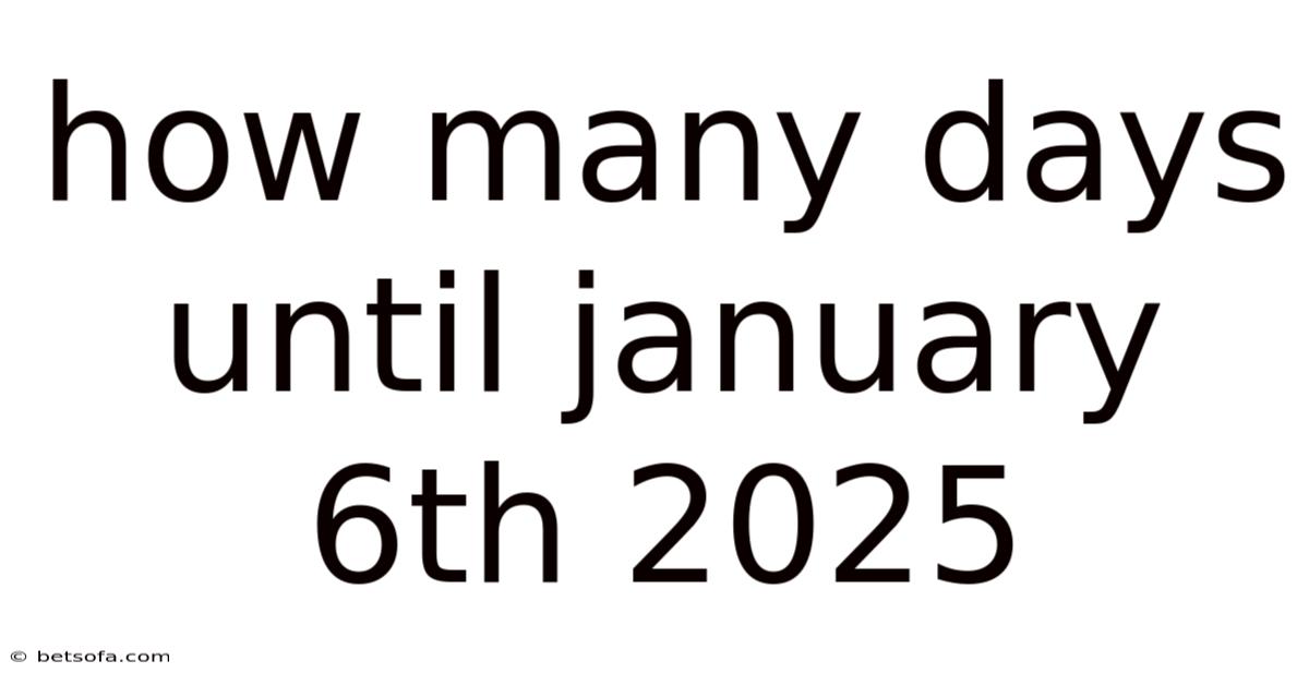 Understanding how many days remain until a specific date, such as January 6th, 2025, involves a simple yet crucial calculation of time. Day to day, this knowledge is essential for effective planning and scheduling, whether for personal, professional, or academic purposes. Because of that, by following the steps outlined in this article, you can accurately determine the number of days remaining until your target date. As we continue to manage the complexities of time and its measurement, the ability to calculate days until a specific date remains a fundamental skill.