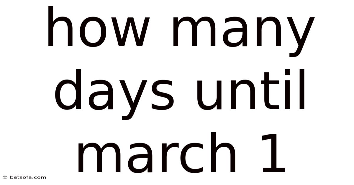 Knowing how many days until March 1 is more than just a simple countdown—it's a tool for planning, anticipation, and staying organized. Whether you're preparing for a special event, a deadline, or just marking the transition from winter to spring, understanding how to calculate this number and what factors influence it can help you stay on track. By keeping in mind the role of leap years and the varying lengths of months, you can always have an accurate answer to this common question. So, the next time you wonder, "How many days until March 1?" you'll know exactly how to find out—and why it matters.