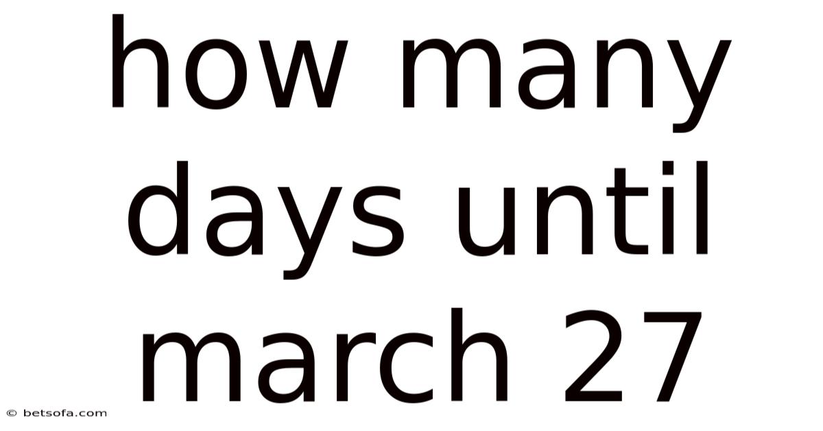 Understanding the timeline to March 27 is crucial for anyone planning events, deadlines, or simply keeping track of important dates. The question "how many days until March 27" is not just a simple calculation; it plays a significant role in personal and professional planning. In practice, whether you're preparing for an important milestone, organizing a project, or managing time effectively, knowing the exact number of days leading up to a specific date can make a world of difference. This article will look at the details surrounding this query, offering a comprehensive breakdown that is both informative and engaging Simple as that..
